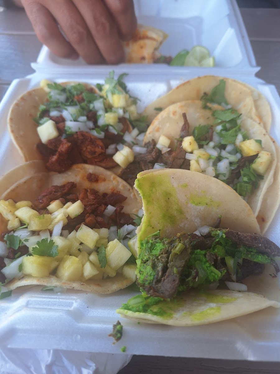 I used to say these tacos were mid but yesterday my family and I sat inside where they have a well stocked toppings and salsa bar. Curtidos, pico de gallo, etc with a wide variety of salsa, it was great. Tacos al pastor y tacos de carne asada, we enjoyed it alll.